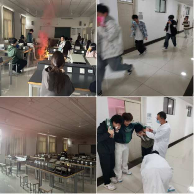 演练模拟实验过程中因实验桌线路老化突发电气火灾的情境,涵盖断电处置、紧急疏散、报警求援、消防灭火、医疗救护及现场封锁等关键环节,不仅全面检验了实验中心应急预案的实施效果,还充分锻炼了师生应对电气火灾的应急处置与协同配合能力。